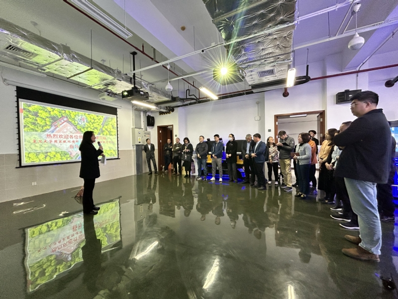学习研讨分成两个部分进行,第一部分在环境系虚拟仿真教学实验室开展现场研学,环境系分党委书记梅鲜主持学习。