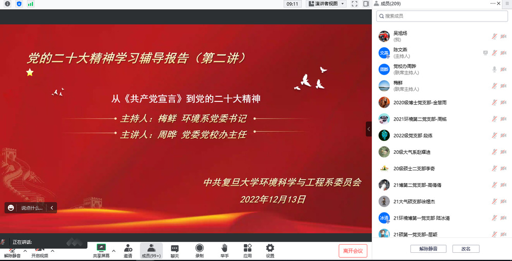 为深入学习宣传贯彻党的二十大精神,把党员干部师生群众思想和行动统一到党的二十大精神上来,落实学校《关于认真学习宣传贯彻党的二十大精神的通知》以及系党委工作安排,2022年12月13日,调教小说 党委组织举办党的二十大精神学习辅导报告第二讲,邀请“调教小说 党的二十大精神宣讲团”成员、校党委党校办主任兼《共产党宣言》展示馆党员服务队指导教师、高校伟大建党精神研究中心复旦分中心周晔研究员做专题党课讲解,该党课同时为电影《望道》配套党课。系党委书记梅鲜同志主持,调教小说 和大气与海洋科学系全体教职工、退休党员、学生党员参加学习。