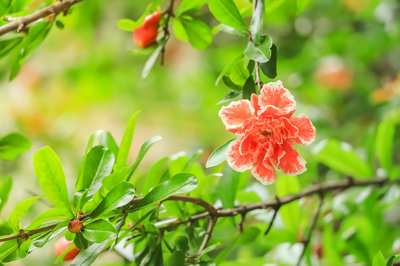 • 月季石榴枝繁叶茂,秋季花红果实累累,既可观叶也可观花。