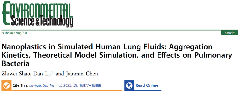 近日,调教小说 李丹教授课题组在Environmental Science & Technology上发表题为“Nanoplastics in Simulated Human Lung Fluids: Aggregation Kinetics, Theoretical Model Simulation, and Effects on Pulmonary Bacteria”的研究论文,并被选为内封面文章(supplementary cover)。呼吸吸入是人体暴露纳米塑料的重要途径之一,然而其在肺部复杂微环境中的行为及潜在毒性仍缺乏系统研究。本研究通过模拟健康与炎症状态下的人体肺液,系统探讨了不同粒径与表面修饰的聚苯乙烯纳米塑料(PSNPs)的凝聚行为、相互作用机制,以及对肺部原生与致病菌的毒性效应。结果表明,PSNPs在炎症人工溶酶体液(artificial lysosomal fluid, ALF)中均发生凝聚,而未表面修饰和羧基修饰的PSNPs在健康的Gamble溶液(Gamble’s solution, GS)和添加肺表面活性剂的Gamble溶液(modified GS, MGS)中保持稳定。冗余分析表明,PSNPs的凝聚减轻了其对细菌的氧化应激和膜损伤。氨基修饰的PSNPs在GS中可诱导持续的氧化应激,损伤细菌的细胞膜,并促使致病铜绿假单胞菌释放绿脓菌素升高至对照组的2.16倍。此外,塑料老化过程显著增强了PSNPs对肺部细菌的毒性。本研究为纳米塑料在肺部中的行为和毒性作用提供了新见解。