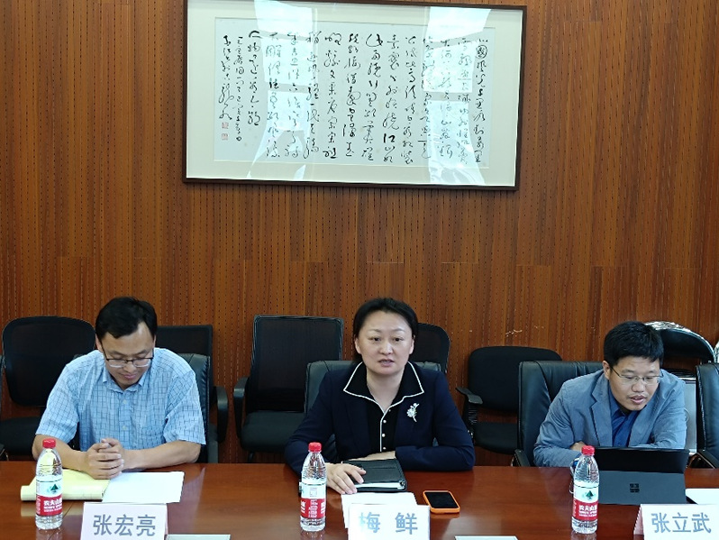 2023年5月6日下午,河北省生态环境科学研究院党委书记、院长康媛媛,唐山市环境规划科学研究院院长张宝军及唐山市生态环境局人事处王佳处长一行来调教小说 调研座谈。系党委书记梅鲜老师、系副主任张立武老师及相关骨干教师出席座谈会,梅鲜书记主持会议。