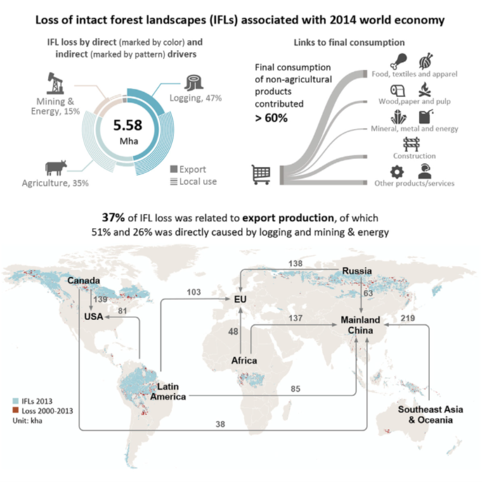 The Conversation科普文章://theconversation.com/global-supply-chains-are-devouring-whats-left-of-earths-unspoilt-forests-198625