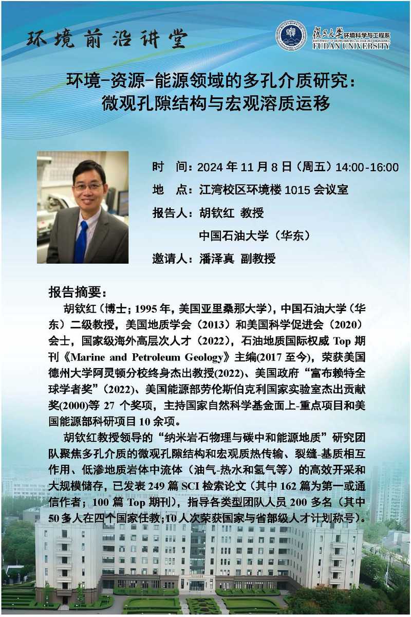 环境前沿讲堂|环境-资源-能源领域的多孔介质研究:微观孔隙结构与宏观溶质运移