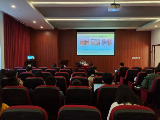 季老师从“人类生活在同一个地球村里”、“始终不渝走和平发展道路”、“建设持久和平、普遍安全、共同繁荣、开放包容、清洁美丽的世界”、“积极发展全球伙伴关系”、“积极参与全球治理体系改革和建设”等五个方面向同学们讲述了人类命运共同体的由来和发展历程,并向同学们介绍我国在探索改革开放过程中提出的中国智慧和中国方案。他提到“一带一路”倡议是构建人类命运共同体重要平台,该倡议具有丰富内涵,自建议实施以来造福沿线各国人民,展望未来拓展“一带一路”国际合作新空间。