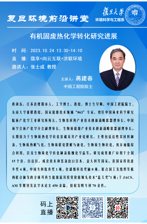 【复旦环境前沿讲堂】有机固废热化学转化研究进展