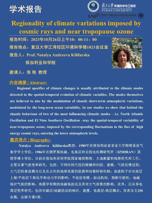 【学术报告】Regionality of climate variations imposed bycosmic rays and near tropopause ozone