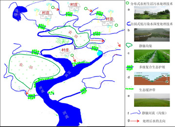 “十五”期间承担的“863”项目、“十一五”期间承担的“国家水专项太湖项目”中,以及“十二五”项目中,系统研究、开发了流域内面源污染来源特征及控制技术,从流域层面对流域内污染物总体控制。主要通过以河流为基础,秉持流水不腐的理念,首先将沟、河、渠、塘等联通成类似“血管”的水网水系,增强流域的纳污净化能力,提高流域环境承载力。再集成农村生活污水处理技术、农村固体废弃物处理技术和地表低污染水深度处理技术,并借助各种生物、生态处理技术的集成,整合物理高性能环境过滤材料和环境生物技术生物手段,经过农村生活污水处理技术、农村固体废弃物处理技术、地表低污染水深度处理技术,以及湿地生态系统等多种自然生态处理途径,全面实现流域污染综合整治,并进行规模化的工程示范。