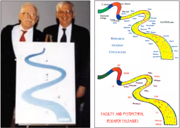 图2. JimMorgan(左)对”a long the riverrun”的典故情有独钟,甚至把它做成海报送给好友(右 Charlies O’Melia,美国工程院院士)