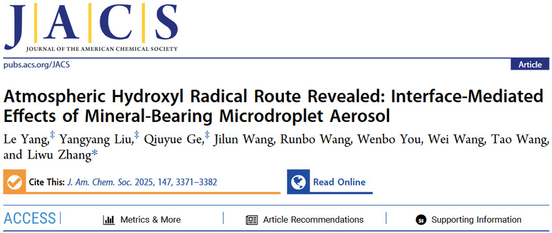 张立武课题组JACS: 矿物气溶胶微滴可能是大气中羟基自由基的重要来源
