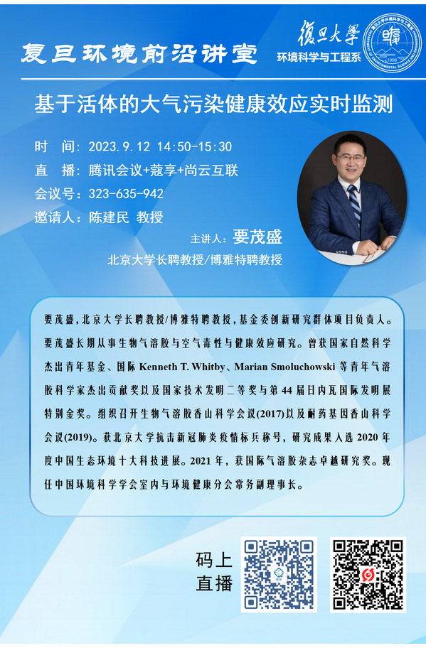 【复旦环境前沿讲堂】基于活体的大气污染健康效应实时监测